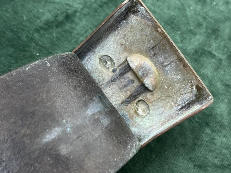 A very nice early brown leather belt, with adjuster tab, complete with the early, all brass SA buckle. Belt unmarked apart from size numbering st the end. 88 . Buckle is two piece construction with pressed out center. This is the second type of buckle with the central swastika at an angle as usually found.