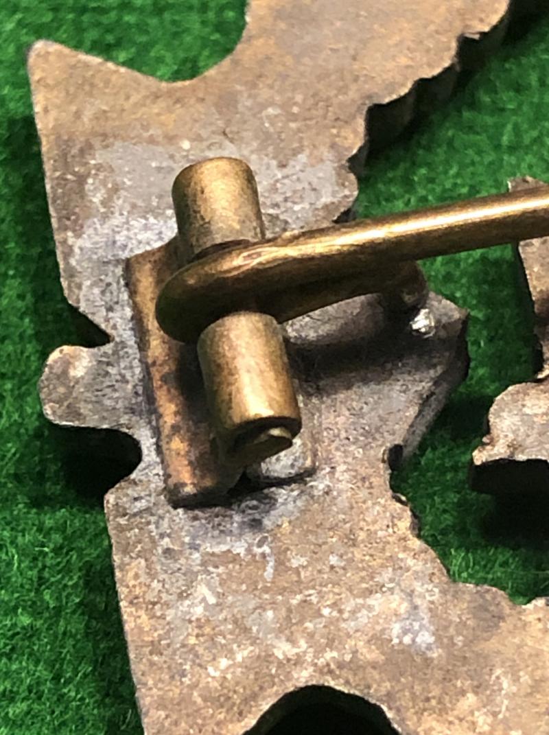 Gilded zinc Auxiliary Cruiser war badge. Mid to late war type, one piece construction with round wire Tombak pin and catch. Although unmarked this example displays the qualities indicating probable manufacture by Foerster & Barth, Pforzheim. The original guided and silvered finish has faded with wear to highpoints with areas of oxidisation around the catch and hinge.