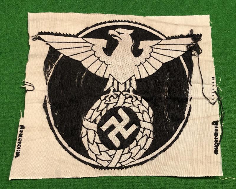 An unissued example of WW2 period S.A. sports vest emblem. Classic BeVo weave construction with clear evidence of having been cut from a roll. Good condition with some creasing.