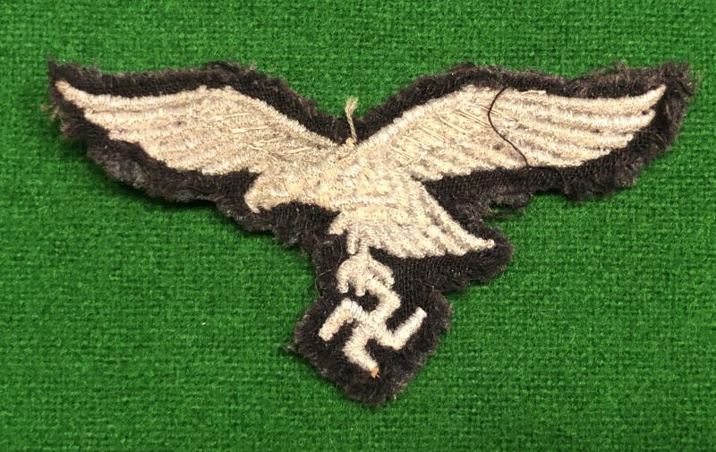Embroidered cap eagle for use by Luftwaffe O/R's on sidecaps and M43 type caps. Good, used condition with clear signs of having been removed from a cap.
