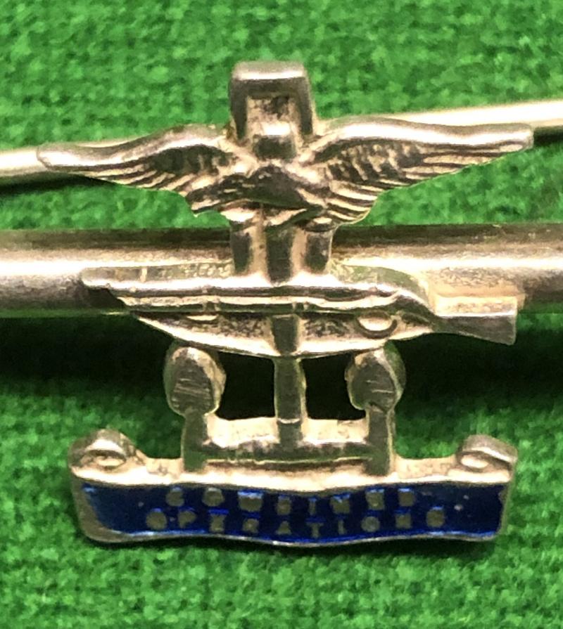 Contemporary N.O.S. Combined Operations silver and enamel sweetheart badge. Pinback, bar type badge, clearly marked ' silver ' to reverse. Excellent, clean condition.
