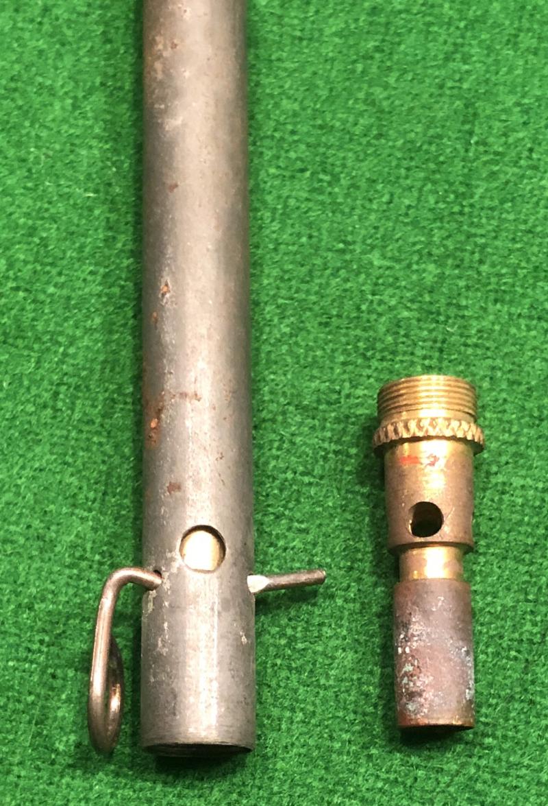 WW2 British pattern time pencil as issued to Auxiliary Units. This alloy, copper and brass example has a good deal of it's original finish complete with red band markings indicating the shortest delay available 1/2 - 3/4 hour. These early British pattern delays are very scarce compared with later patterns and this example is complete but INERT.