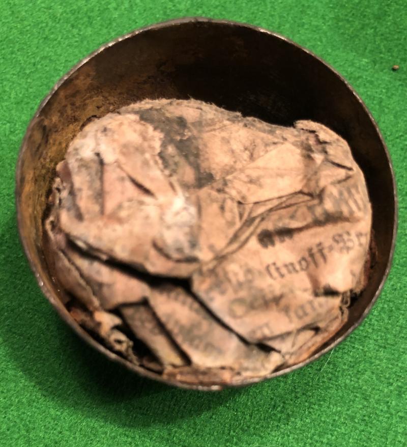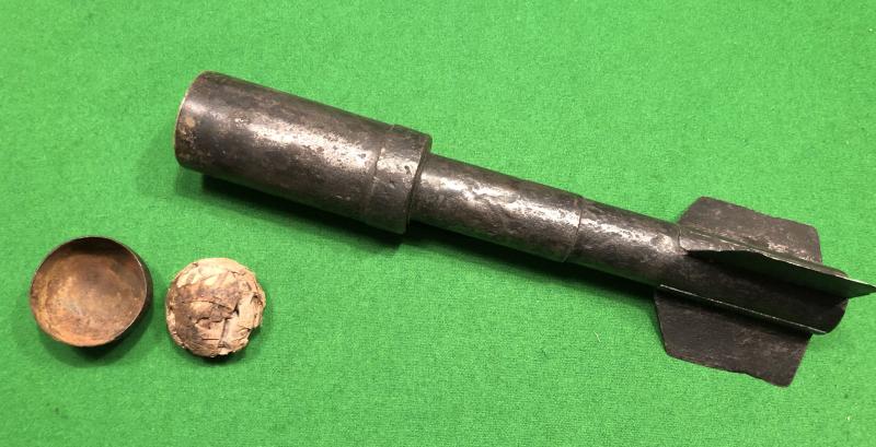 German WW1 Grantenwerfer 16 Signal/Illumination Round. Spigot mortar round launched from the Grantenwerfer 16 light trench mortar. In excellent, recovered condition with removable cap and retaining original period German newspaper used as wadding. Uncommon.