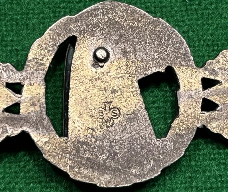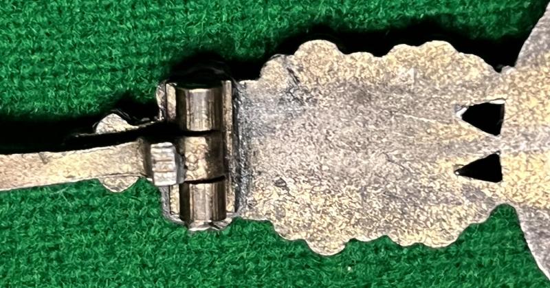 Luftwaffe reconnaissance clasp. Two piece construction and appears to be bronze grade, with some of the finish absorbed by the zinc body. Steel pin with block hinger and wire catch. Maker marked ' BSW ' for Gebrüder Schneider, Wien to reverse. Good, original example.