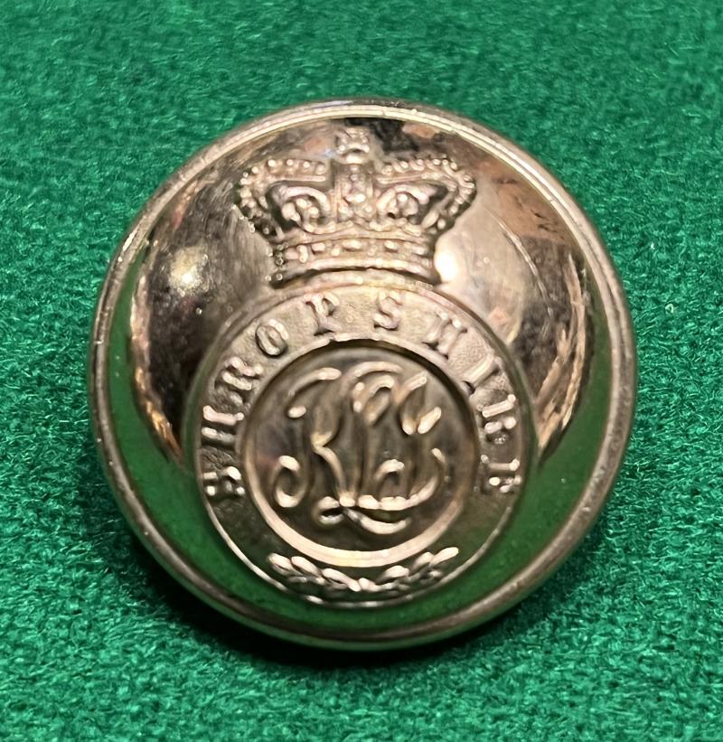 A set of six gilt tunic buttons for an officer of the King's Shropshire Light Infantry. Featuring a Victorian crown surmounting an encircled Shropshire KLI device with a high gilt finish. Manufacturer marked ' Pitt & Co 50 St.Martins Lane, London '. Excellent bright condition.