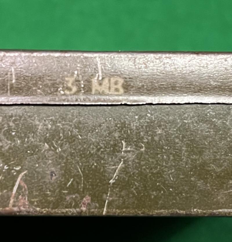 A well used example of a WW2 British cigarette ration tin. ' 3 MB ' to the side of the lid indicating manufacture by Metal Box.
