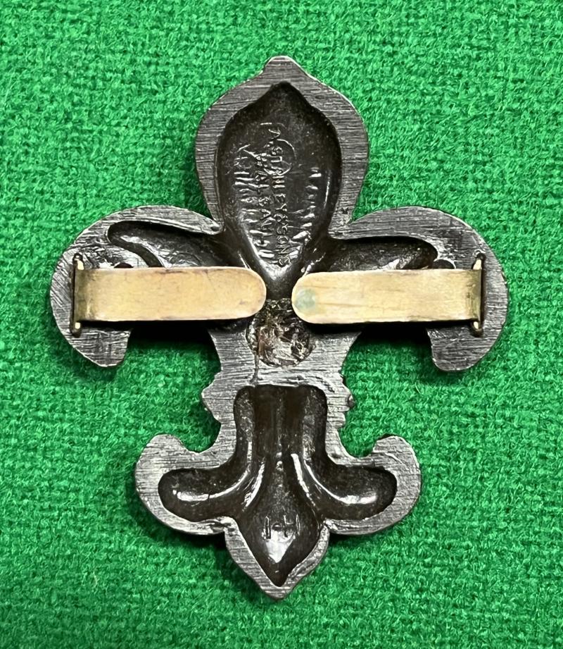 WW2 plastic, economy cap badge for the Manchester Regt. Manufacturer marked to the reverse ' A.Stanley & Sons, Walsall '. Sharp and clean example with both blades intact.