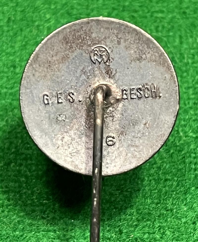 Third Reich NS-Volkswohlfahrt pin.17mm marked to the reverse ' GES GESCH. RZM.16 '. Good, clean condition. POSTFREE within UK