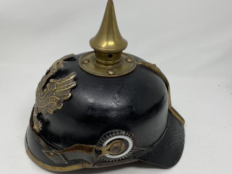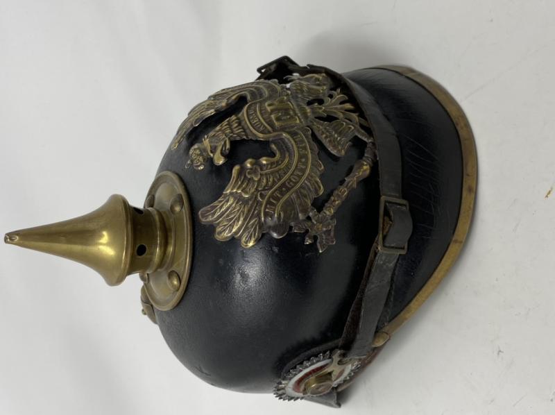 IMPERIAL GERMAN WW1 PICKELHAUBE WITH BRASS FITTINGS.