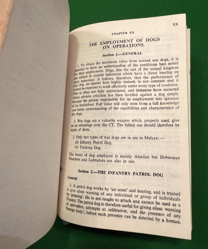 1954 British manual ' The conduct of Anti-Terrorist Operations in Malaya. 23 chapters covering the history of the conflict to ambushes, intelligence, use of dogs, air support and communications. Illustrated with sketches and diagrams and in good, used condition. Uncommon.