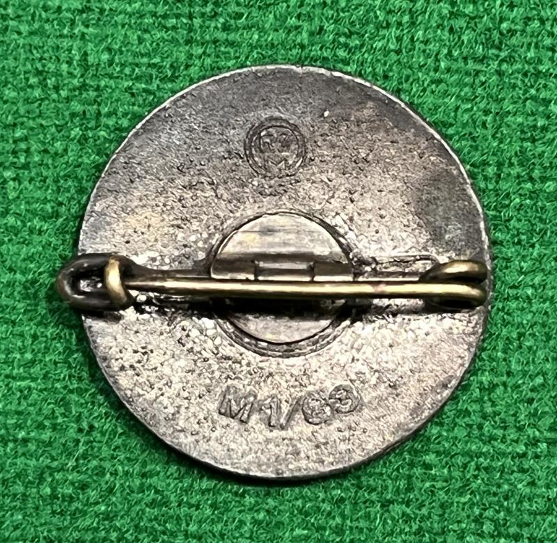 WW2 economy, zinc, painted NSDAP party badge. Lapel fitting to reverse and marked RZM M1/63 indicating manufacture by Steinhauer & LuckLüdenscheid. Good, used condition with some minor paint loss.