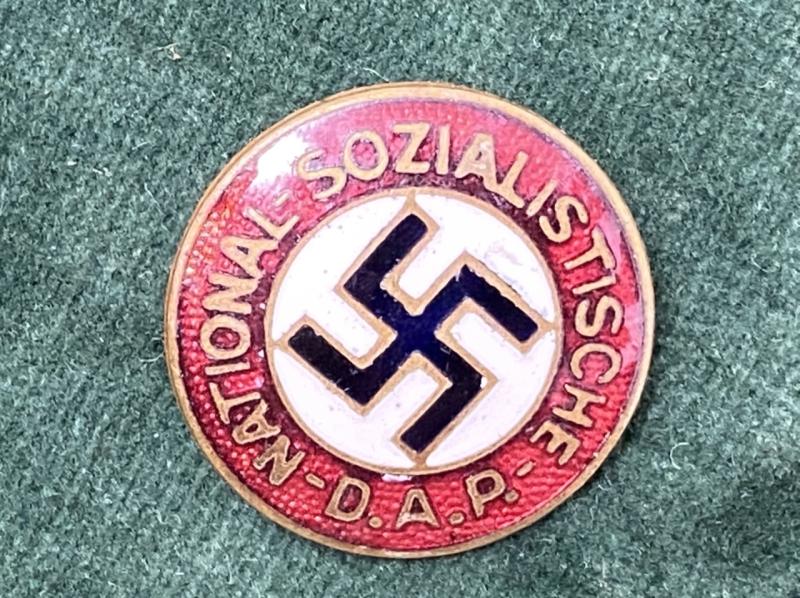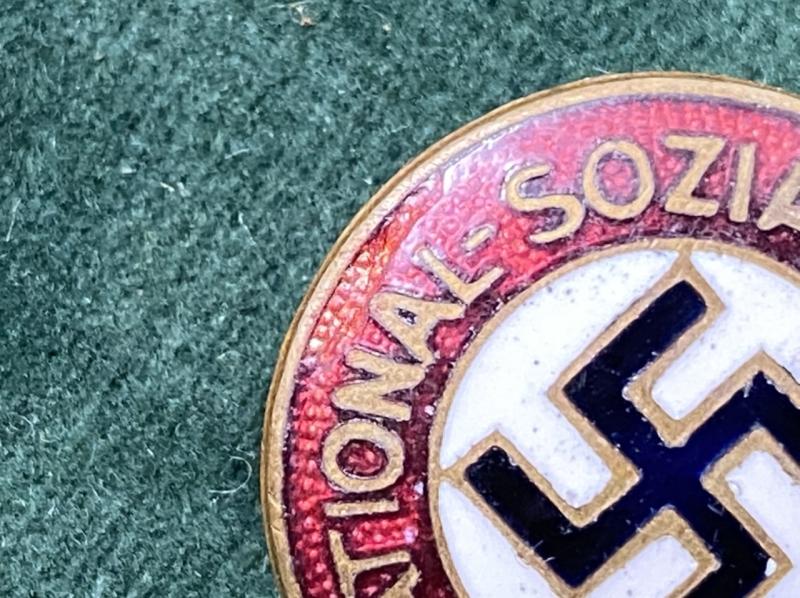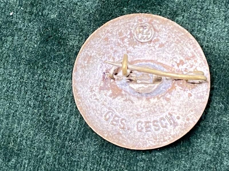 Made in their millions and worn by millions at the time. A standard size round enamel party badge. In good condition overall and complete with pin to reverse. RZM marked (no code) with Ges Gesch underneath. There is a tiny chip to the red enamel on the very edge to the left of the badge, but hardly noticeable.