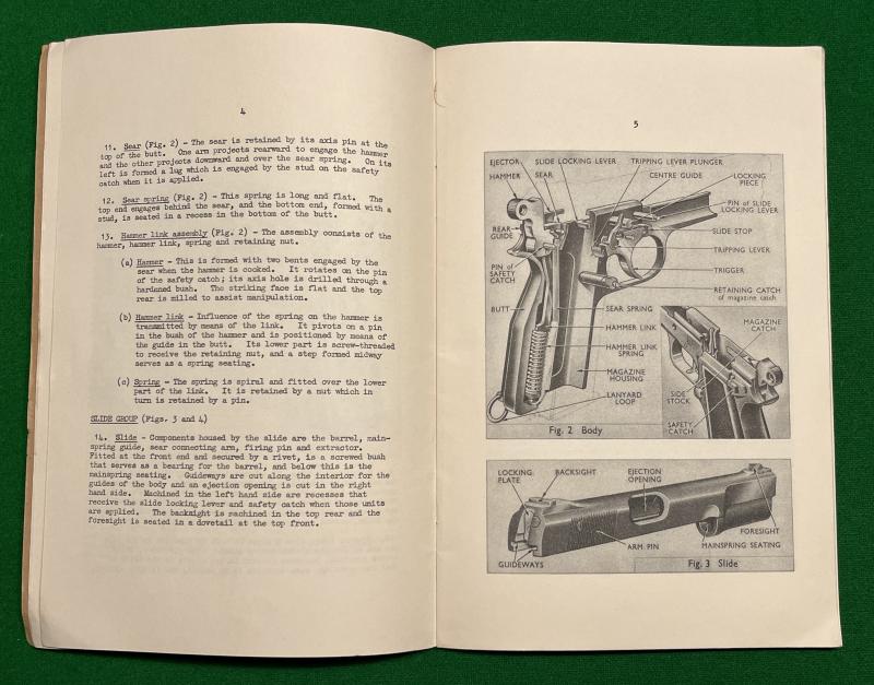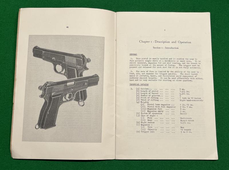 1958 ' Pistol Browning,F.N.9mm No.2, Mark I* ' Manual. Supersedes 1946 W.O.1615 (SEE item:9537 ) 37pgs with exploded diagrams, photographs and sketches outlining the use of Britain's standard semi-auto pistol. Excellent, used condition.