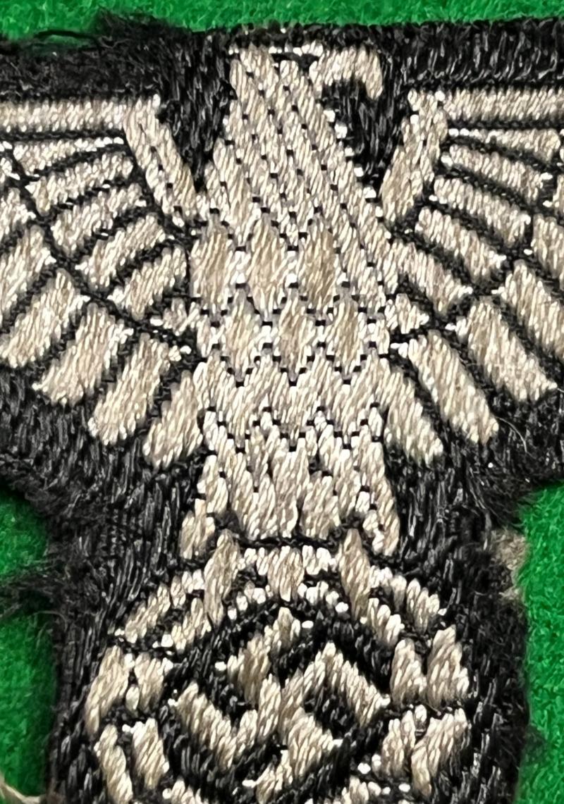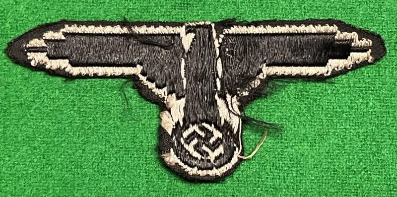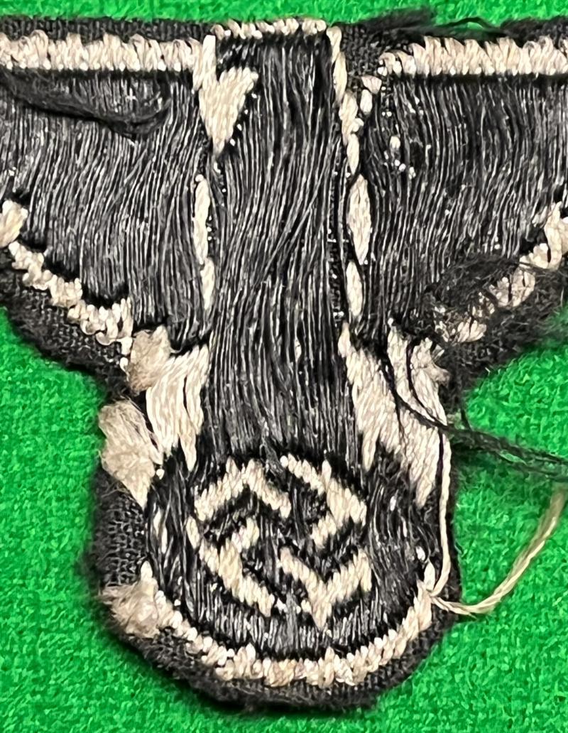 Good, original BeVo, woven Waffen SS sleeve eagle for use by enlisted ranks.Clear evidence of having been removed from a uniform with light marking.