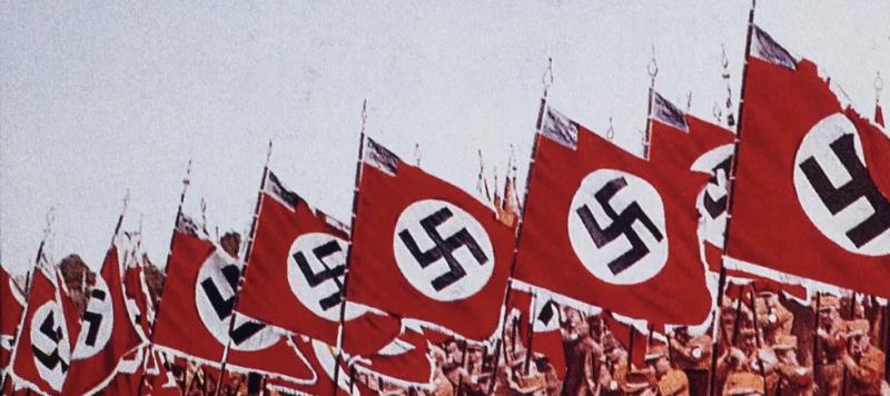 A PAIR OF AREA ‘PATCHES’ FROM THIRD REICH NSDAP BANNER/FLAG.