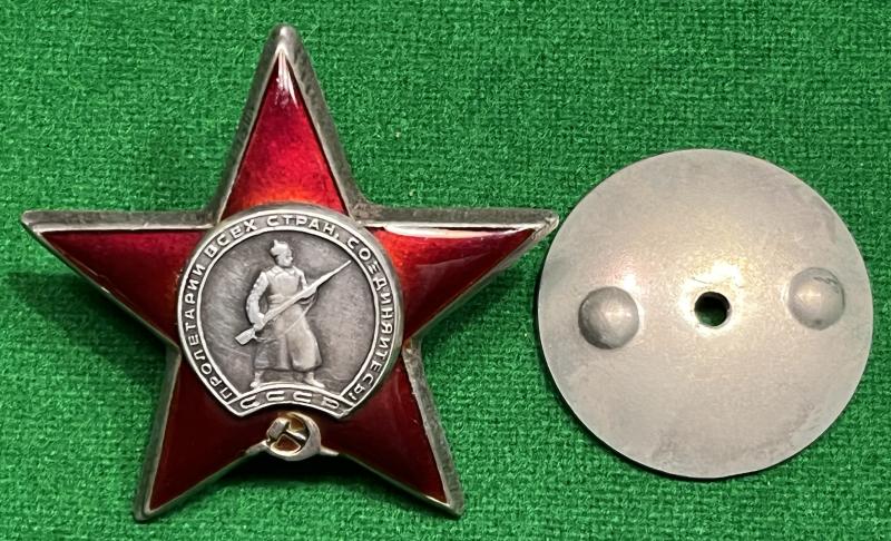 Original WW2 USSR Russian Order of the Red Star. Good, clean example with undamaged enamel and a light patination overall. Manufacturer marked to reverse with inscribed issue number. Unresearched.