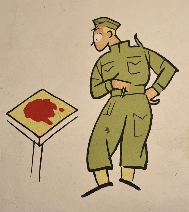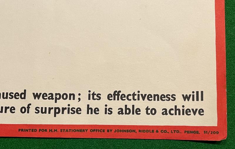 Part of a series of posters created by ' Fougasse ' the artist Kenneth Bird ( famous for his ' Careless Talk ' poster series), for the Army highlighting defensive measure against Gas. 36cms x 24cms approx. printed by Chromoworks Ltd., a favoured Government contractor for posters. Good, used condition with light marking and some minor marks and creases. Uncommon. SEE also item: 9577