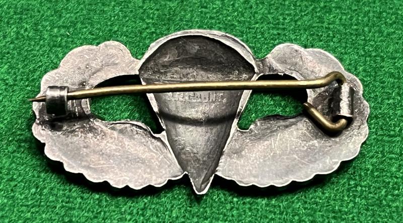 A good example of an English made WWII U.S. Army Paratrooper qualification wing. Marked ' J.R.Gaunt ' to reverse with brass pin back fitting. Darkly patinated.