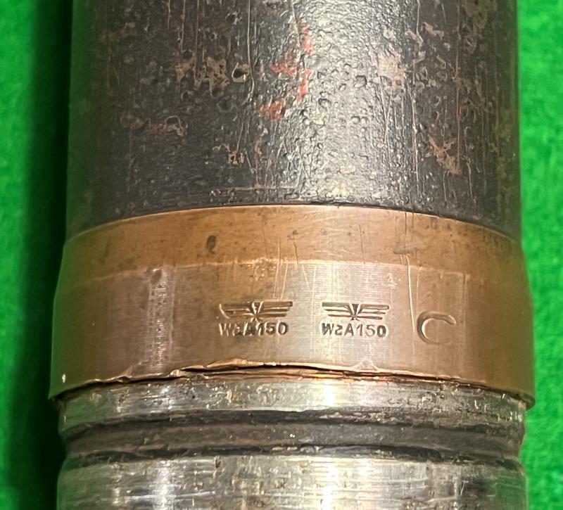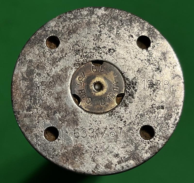 WW2 German, 1938 Dated 3.7cm PAK 36 APHE (Armour Piercing High Explosive) round with scarce two piece brass and steel composite cartridge case. Projectile with residual paint finish with copper drive band with various waffenampt and inspection stamps. Brass case with steel base and separate brass primer with various manufacturer marks. Composite cased rounds are rather more scarce than their steel or brass contemporaries.