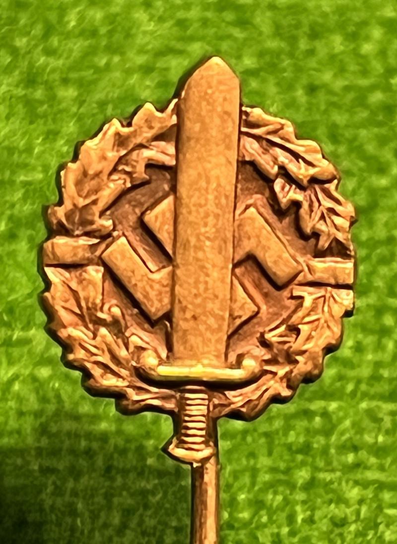 Miniature SA bronze sport badge in stickpin form. Manufacturer marked to reverse, good, used condition. POSTFREE within UK