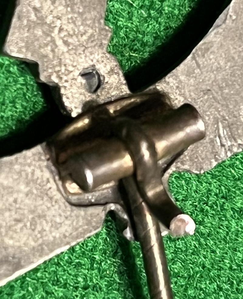 U-Boat War Badge, gilded zinc construction maker marked ' fo ' for Friedrich Orth. Good detail with steel pin to reverse with the gilt wash now only visible in the recesses, typical of the zinc badges where the gilding fades over time. Pin slightly distorted through wear. Good example.