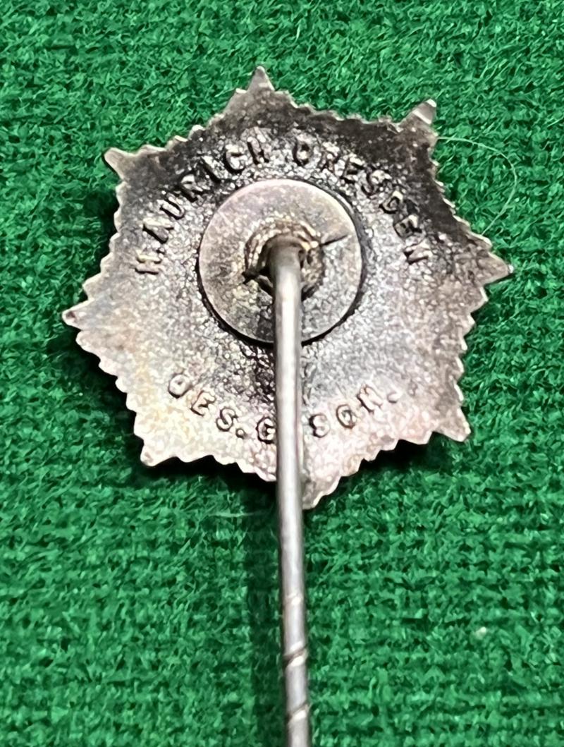 Silver gilt and enamel stick pin for wear by members of the RLB - Reichsluftschutzbund. Knurled pin, manufacturer marked ' H.Aurich Dresden '. Lightly patinated overall.