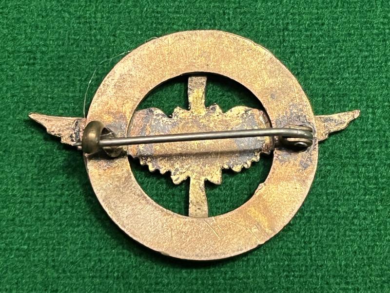 Scarce gilt and enamel, pin back badge worn by workers employed in the manufacture of aircraft during WW1. Good, used condition with one small enamel flake beneath the l/h wing.