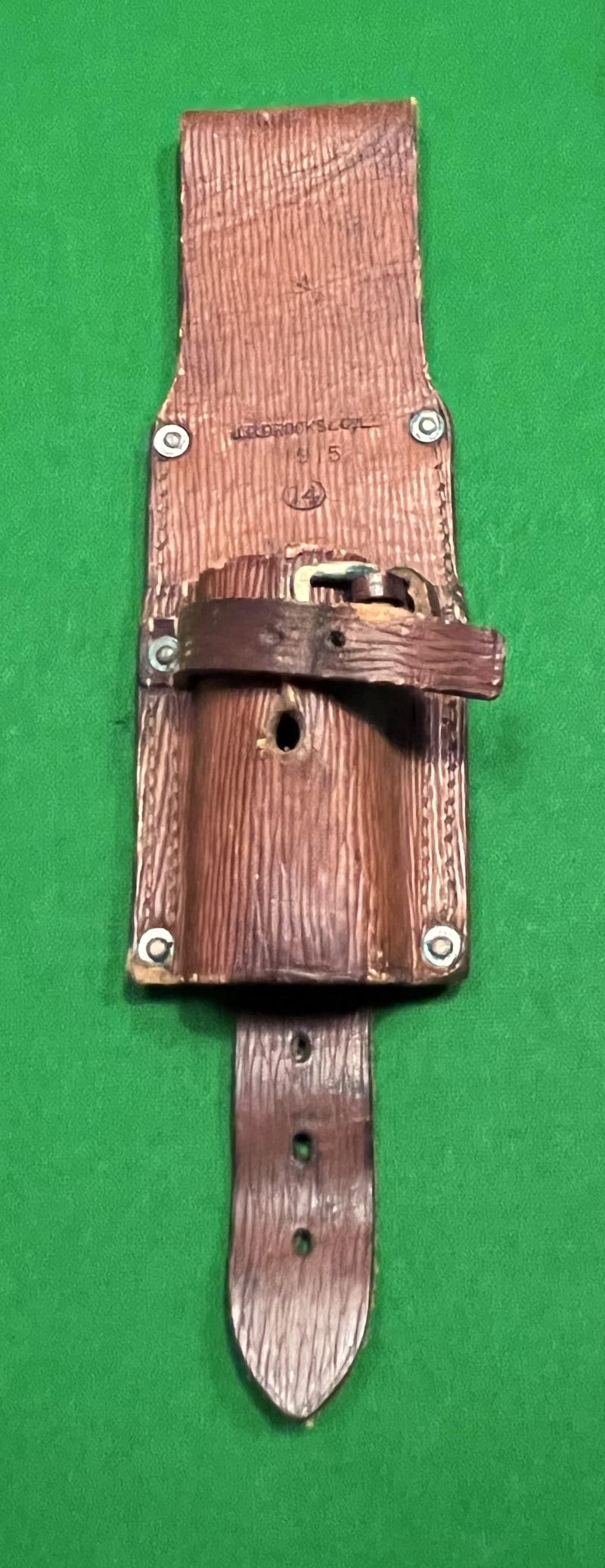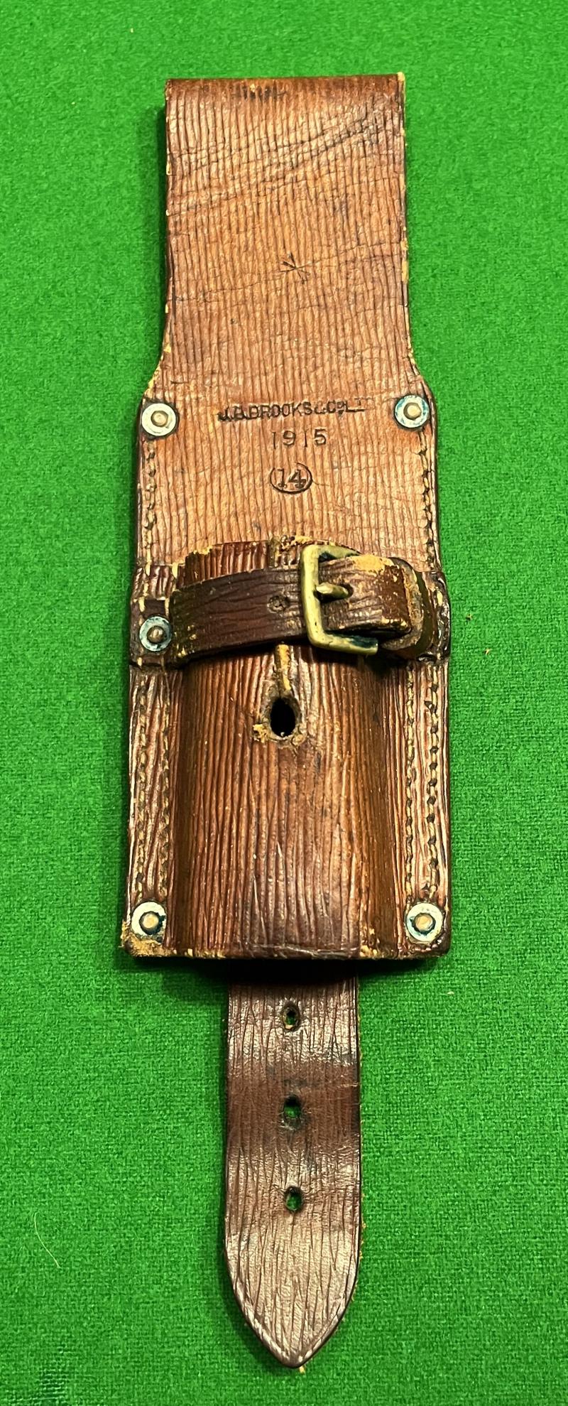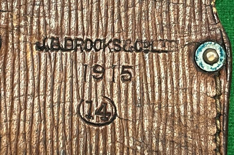 Above average condition WW1 1914 Pattern Equipment bayonet frog. Clearly dated 1915 and manufacturer marked ' J.B.Brooks & Co Ltd ' with various other inspection marks.