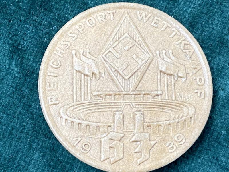 A nice pressed paper or cardboard circular badge issued to HJ entrants in a 1939 ‘Sports Completion’.