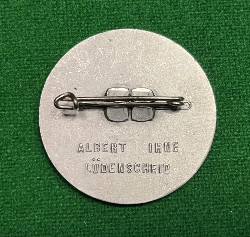 Alloy, pin back day badge produced in celebration of the 10th anniversary of the Berlin Gau 1926-1936. Manufacturer marked to the reverse ' Albert Ihne, Ludenscheid '. Good, clean condition.