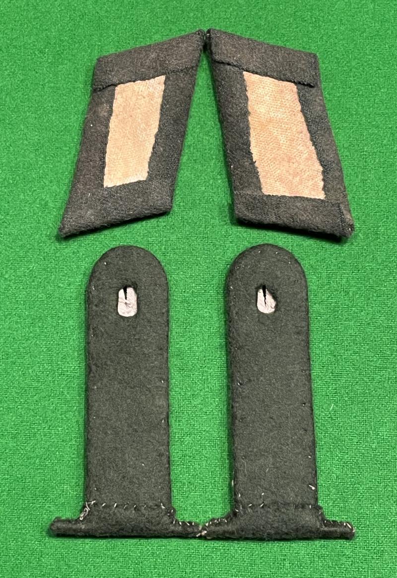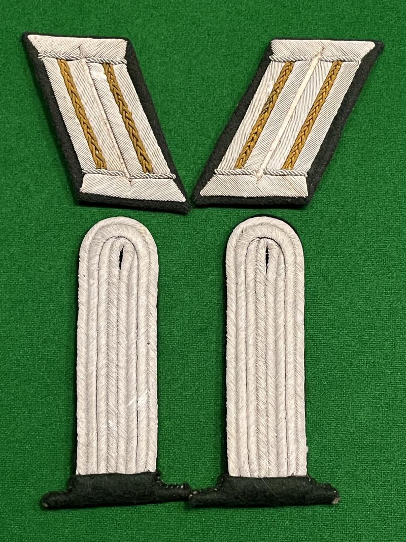 Set of insignia for a leutnant zur See of the Marine Artillery. Removable shoulder boards made from fine bullion wire with dark, bottle green underlay accompanied by a matching pair of collar boards. Unissued condition with a few small patches of oxidisation otherwise excellent condition.