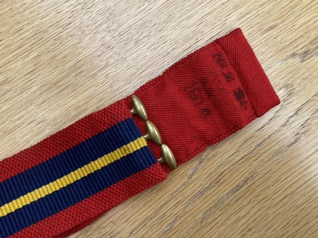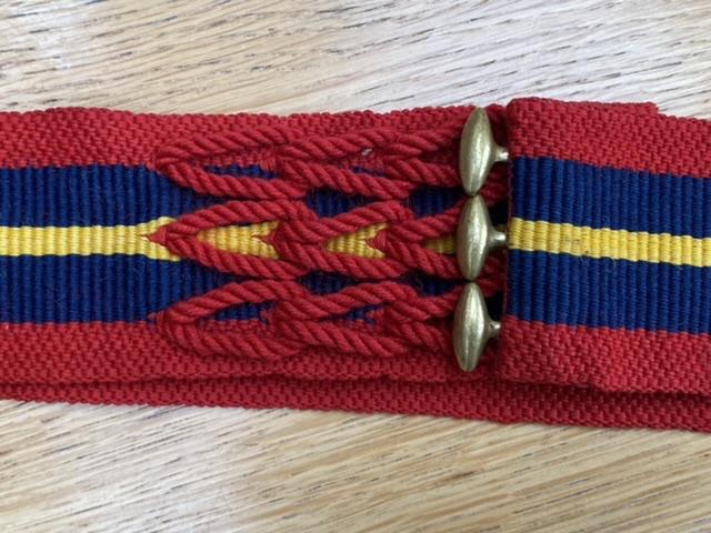 In perfect condition the WW1 Girdle is in the colours of the Royal Artillery. It is ink stamped with the maker and dated on the inside 1914. Now 114 years old! An official antique. Ideal display piece with badges or other Royal Artillery items.