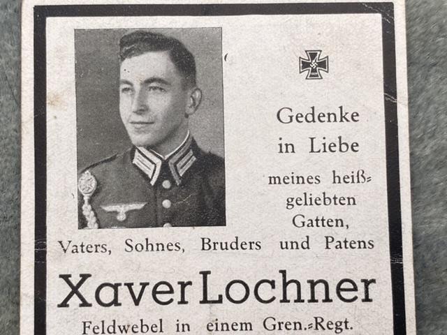 Sent to members of the family, or next of kin. This is the death card notification for a Feldwebel in Grenadier Regt. Killed in Croatia on the 17th.August 1944. His name was Xavier Lockner.